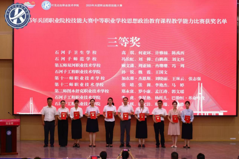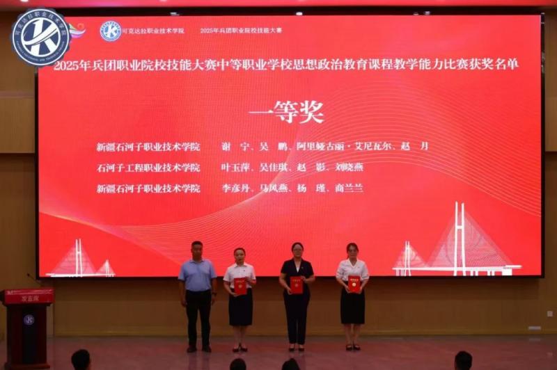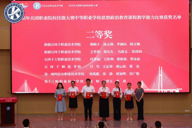7月29日,2025年兵团职业院校技能大赛中等职业学校班主任能力比赛暨思想政治教育课程教学能力比赛现场决赛在可克达拉职业技术学院圆满收官。作为兵团职业教育思政领域的重要赛事,此次大赛汇聚来自兵团20所职业院校、28支参赛教学团队、112名思政课教师同场竞技。我院6支参赛团队凭借深厚的专业积淀、扎实的教学功底、前沿的教学理念和精湛的现场展示,斩获一等奖1个、二等奖1个、三等奖3个并荣获“优秀组织奖”,充分展现了我院思政课教师卓越的教学能力和育人风采。
